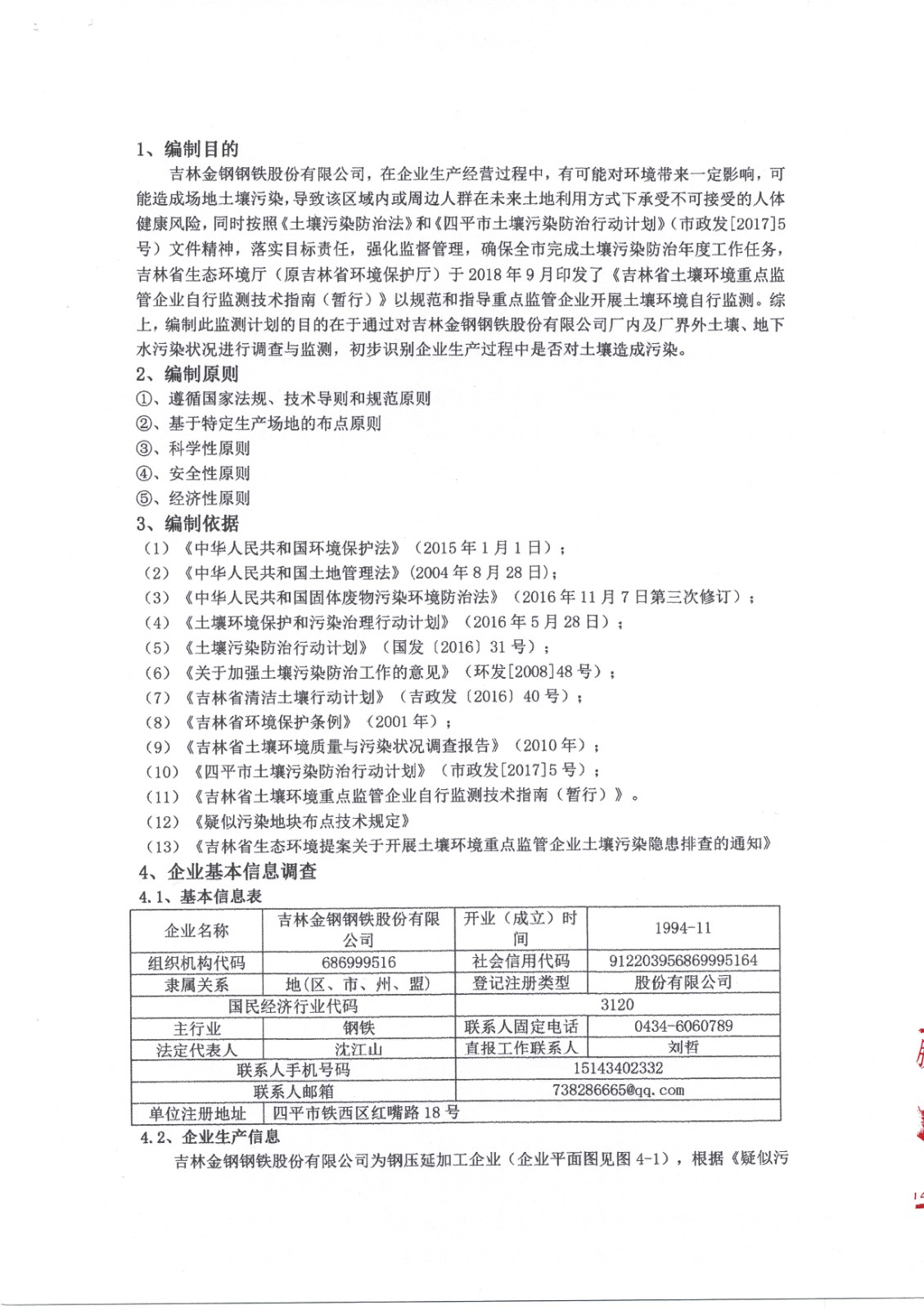吉林金鋼鋼鐵股份有限公司2021年土壤污染自行監測方案
